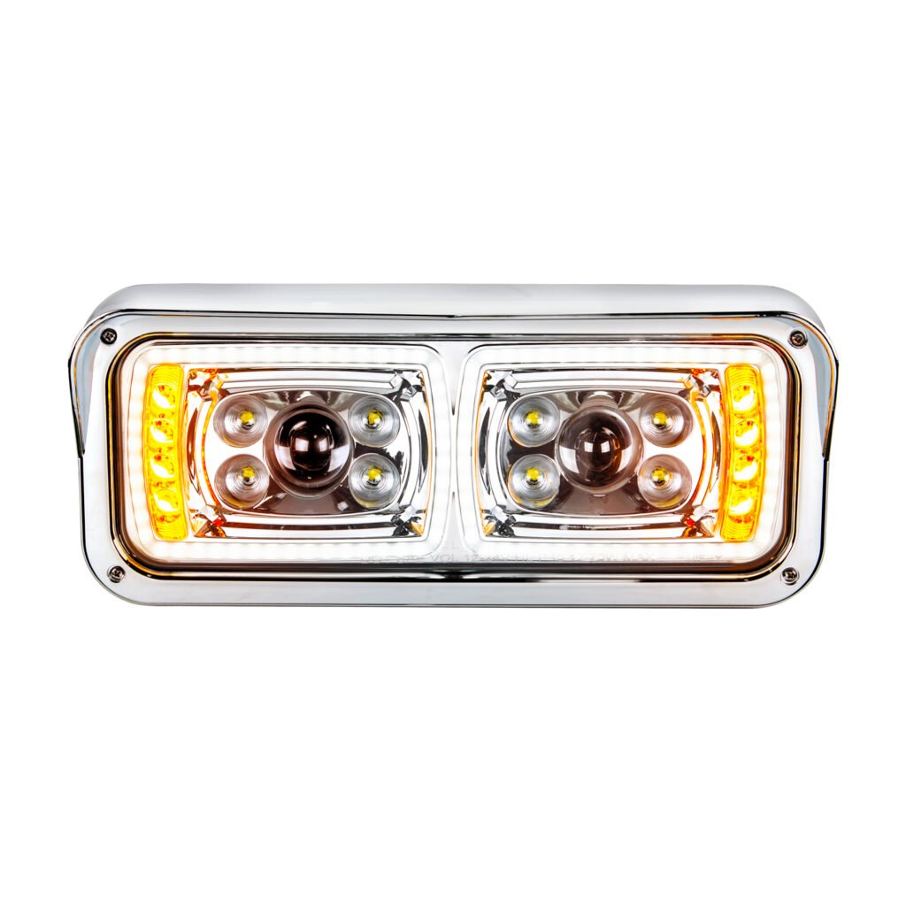 10 High Power LED “Chrome” Projection Headlight With LED Turn Signal & Position Light Bar – Passenger