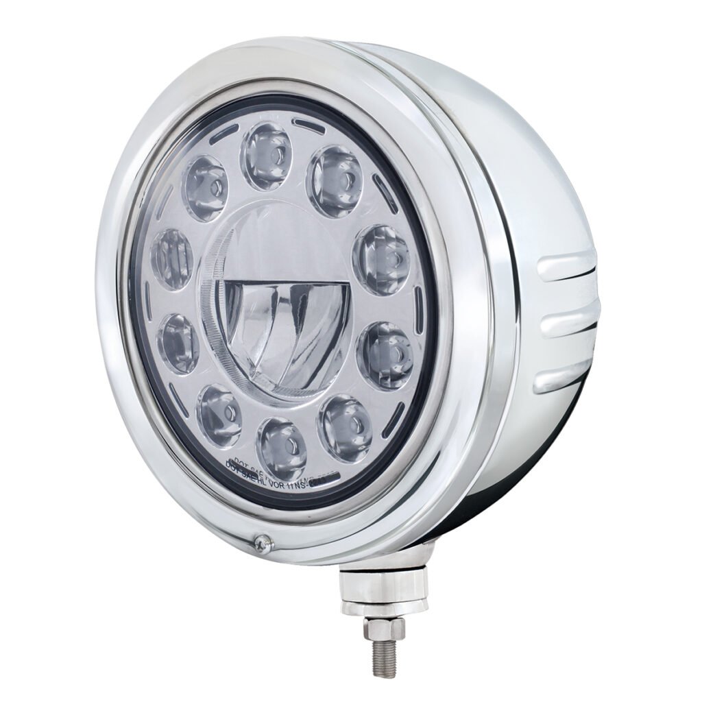 Stainless Bullet Embossed Stripe Headlight Housing With 11 LED Crystal 7″ Round Headlight