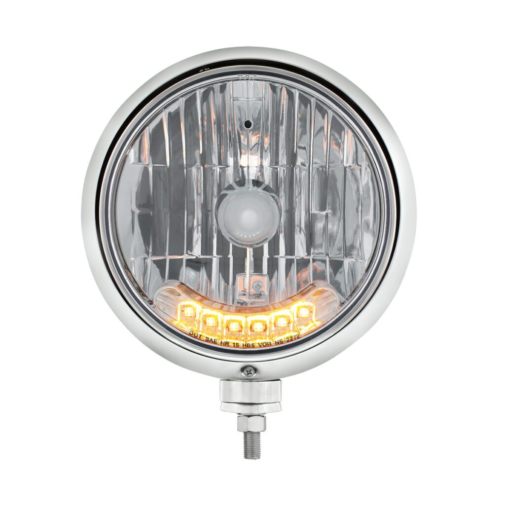 SS Bullet Embossed Stripe Headlight H4 With 6 Amber LEDs & Dual Mode LED Signal -Amber Lens