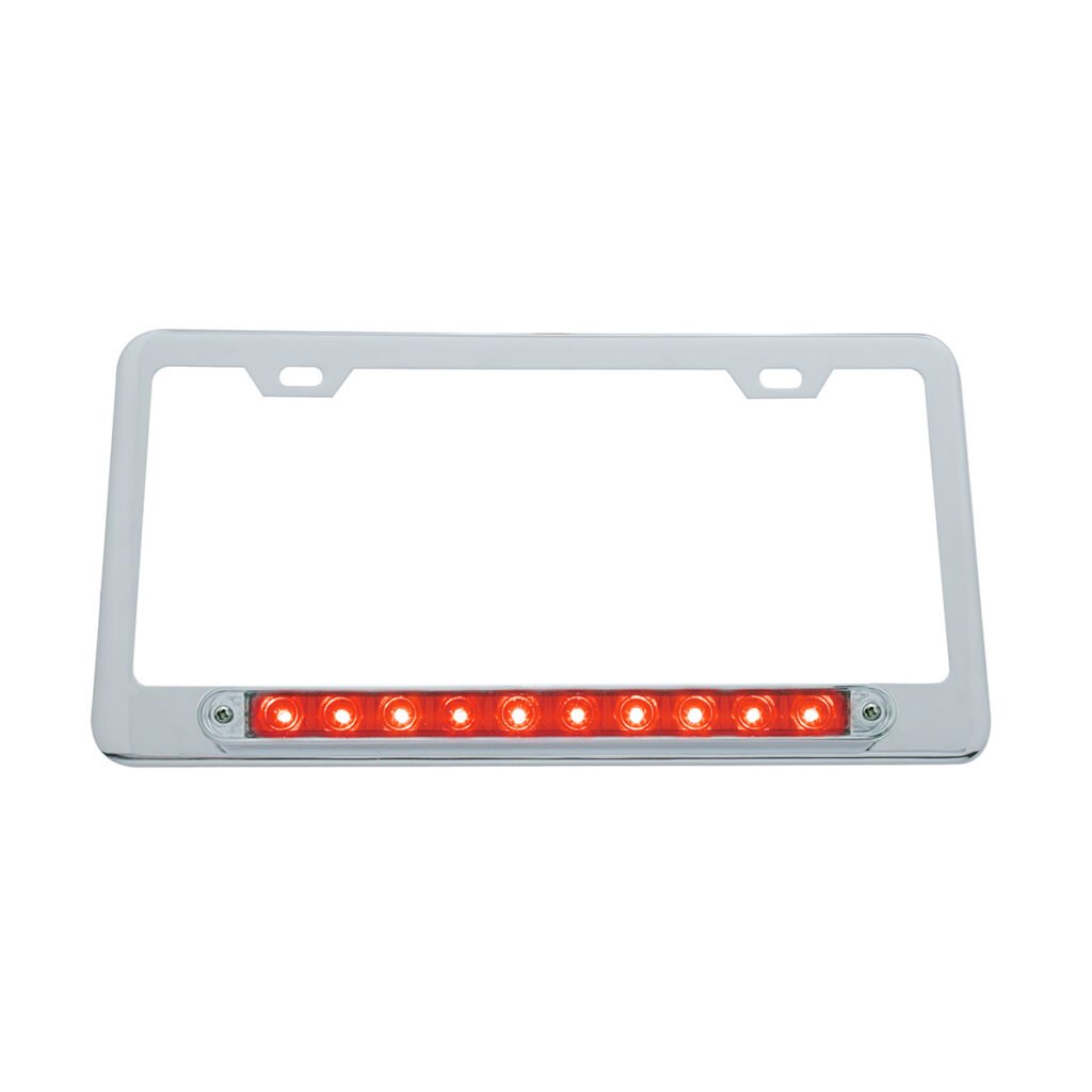 Chrome License Plate Frame With 10 LED 9″ Light Bar – Red LED/Clear Lens