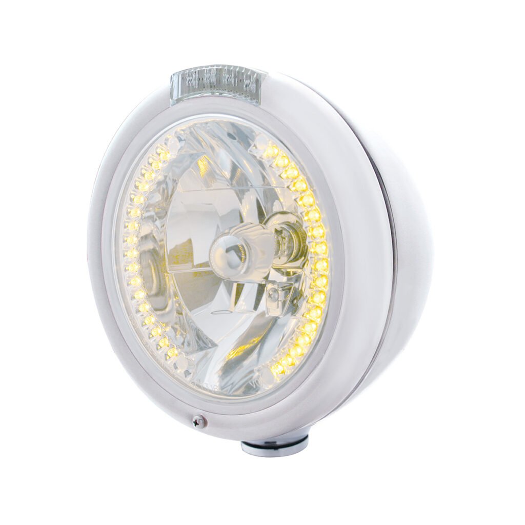 Chrome Classic Headlight H4 With 34 Amber LED & Dual Mode LED Signal – Clear Lens