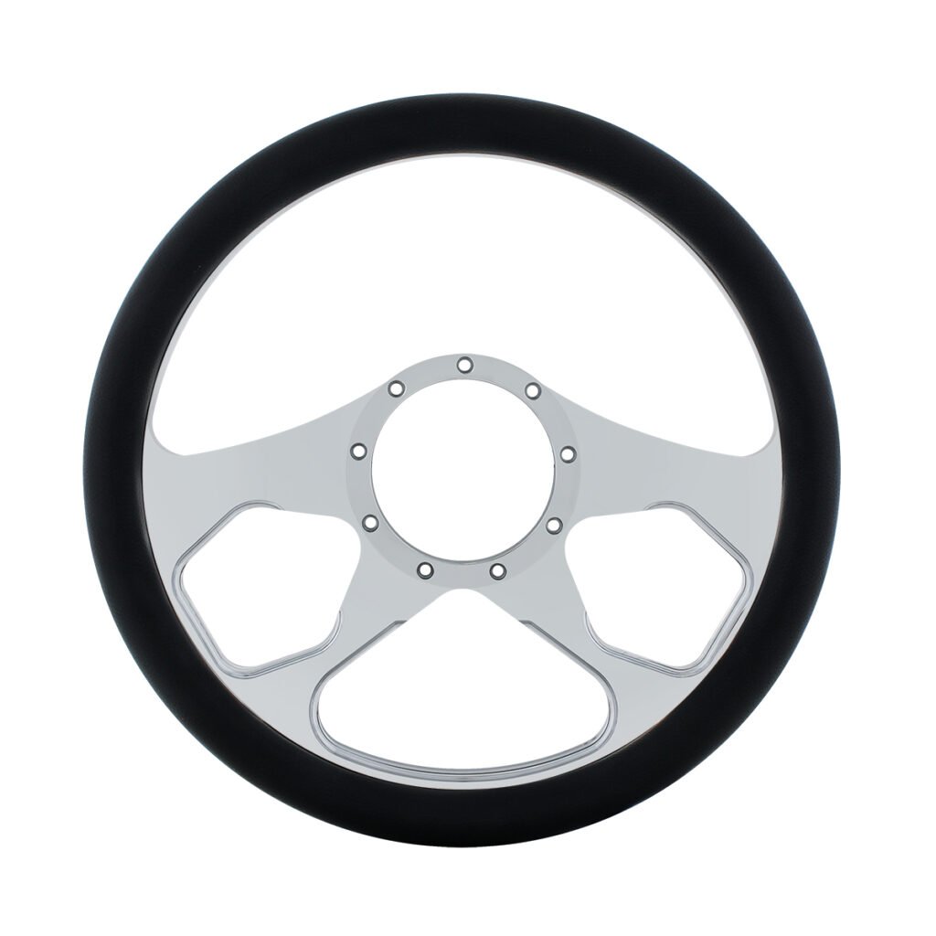 14″ Chrome Aluminum 4 Spoke Boss Style Steering Wheel With Black Engineered Leather Grip