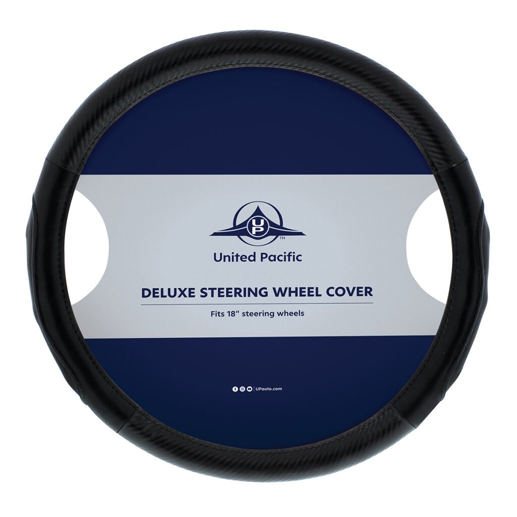 18″ Carbon Fiber Pattern Steering Wheel Cover – Black Stitching