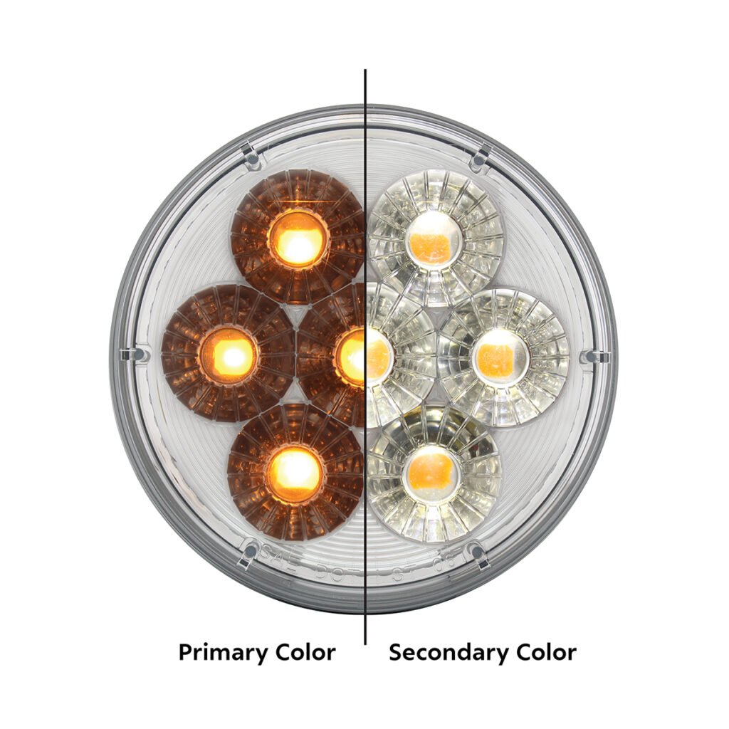 14 LED 4″ Round Double Fury Light (Turn Signal) – Amber & White LED/Clear Lens