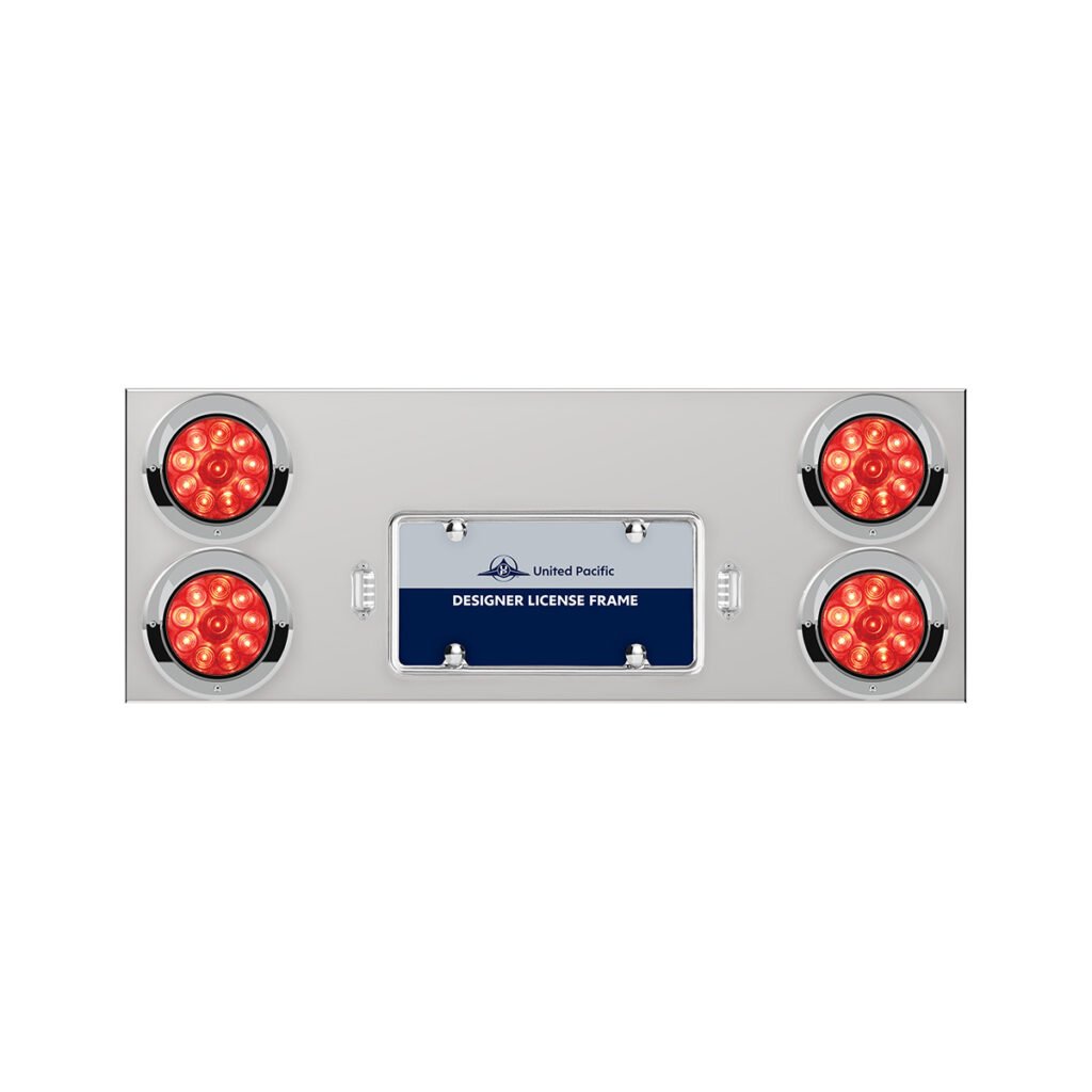 33-3/4″ Stainless Rear Center Panel With Four 10 LED 4″ Lights & Visors – Red LED/Red Lens