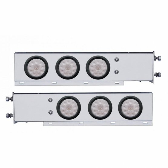 3-3/4″ Bolt Pattern Chrome Spring Loaded Bar W/6X 4″ 10 Red LED Lights – Clear Lens (Pair)