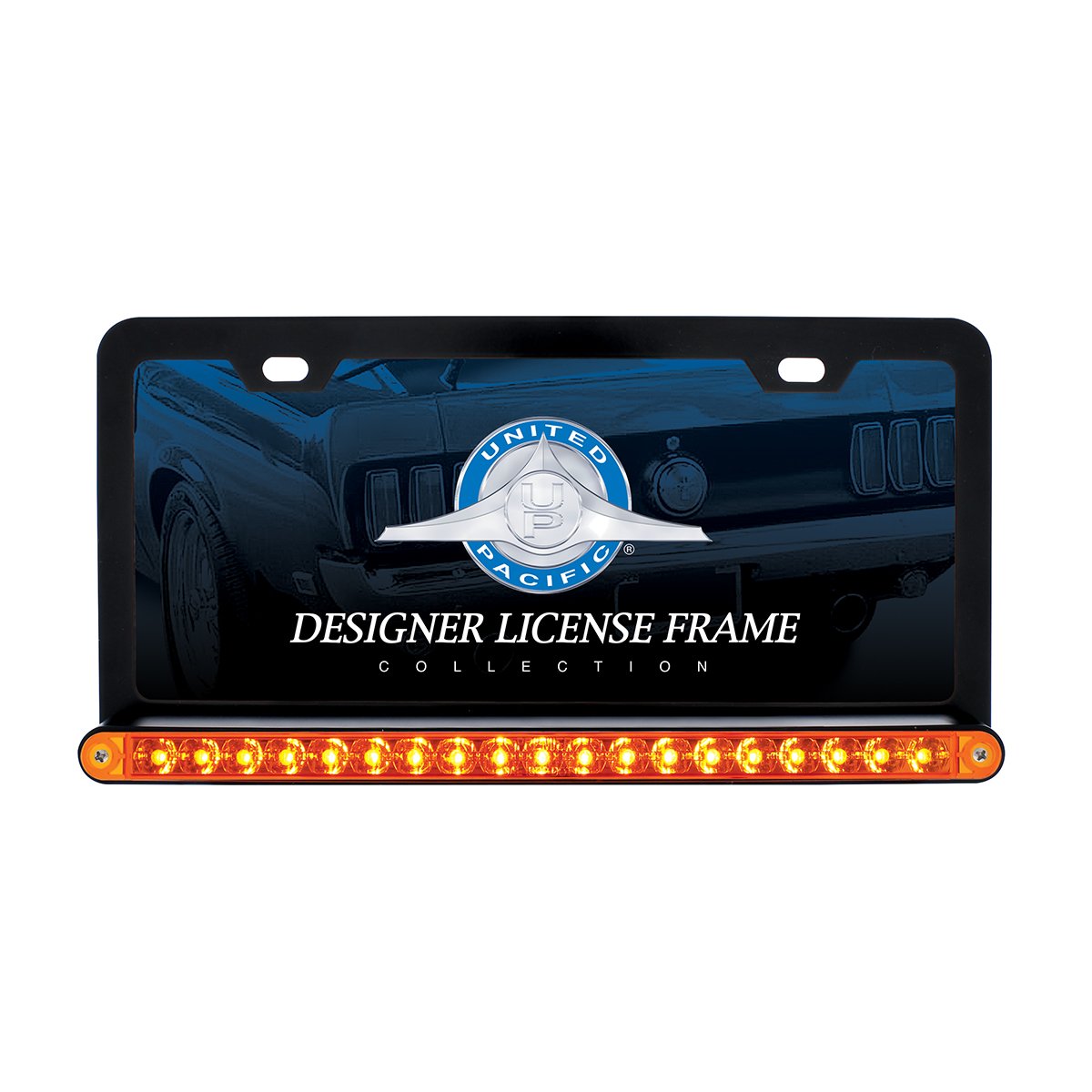 Black License Plate Frame With 19 LED 12″ Reflector Light Bar – Amber LED/Amber Lens