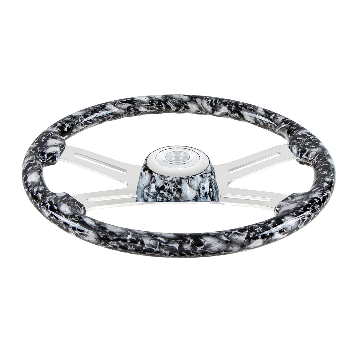 18″ 4 Spoke Skull Steering Wheel With Matching Skull Horn Bezel – White