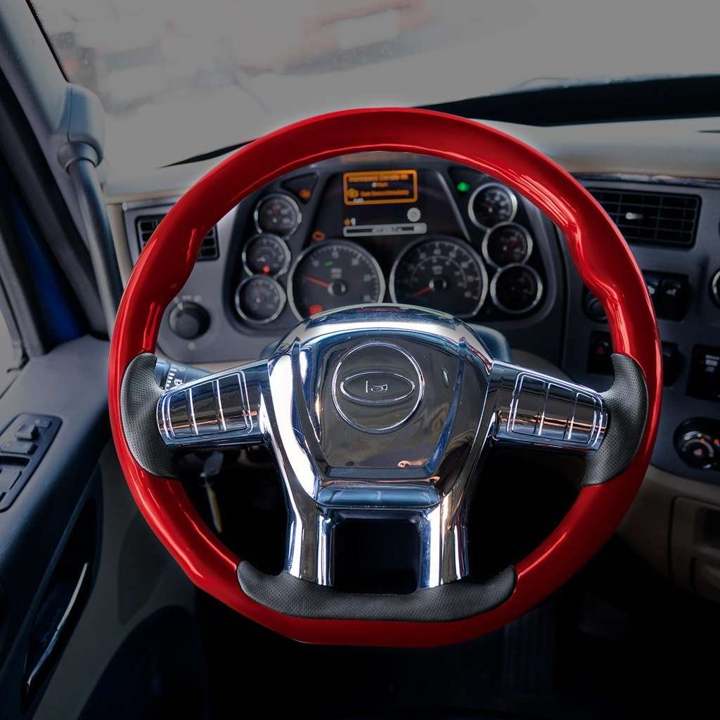 18″ YourGrip Wood Candy Color Steering Wheel For 2012-2021 Peterbilt 579 & 2013-2021 Kenworth T680-Candy Red