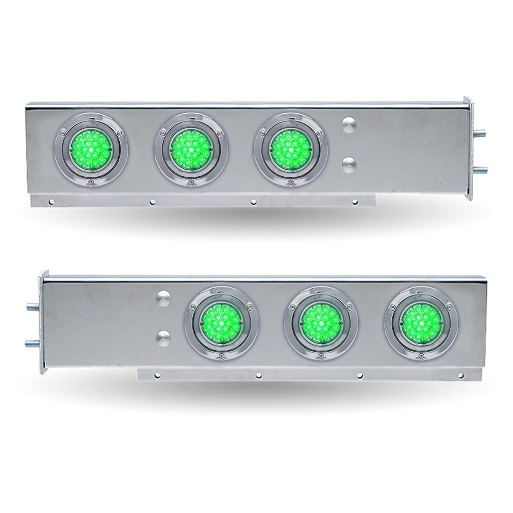 30″ Dual LED Mud Flap Hangers with Stop, Turn & Tail to Green Auxiliary Watermelon LEDs (Clear Lens) – 2 1/2″ Bolt Spacing