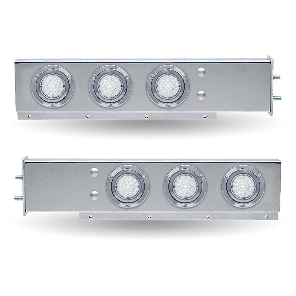 30″ Dual LED Mud Flap Hangers with Stop, Turn & Tail to Back-Up Auxiliary Watermelon LEDs (Clear Lens) – 2 1/2″ Bolt Spacing