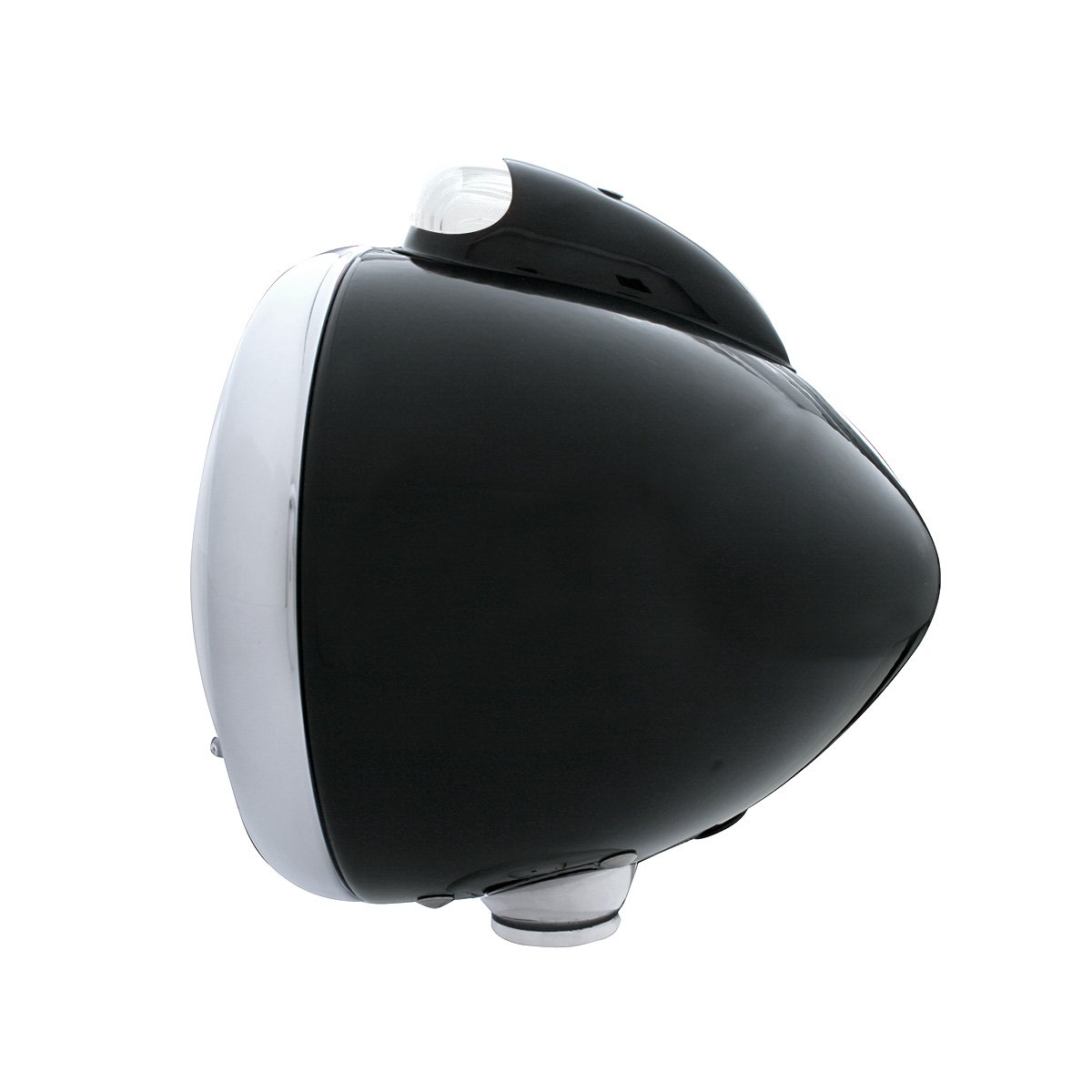 - Stain black powder coated steel headlight housing with matching top mount cover and beautiful chrome plated bezel.