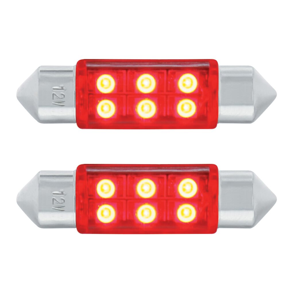 6 SMD High Power Micro LED 6418/6461-36mm Dome Light Bulb – Red (2-Pack)