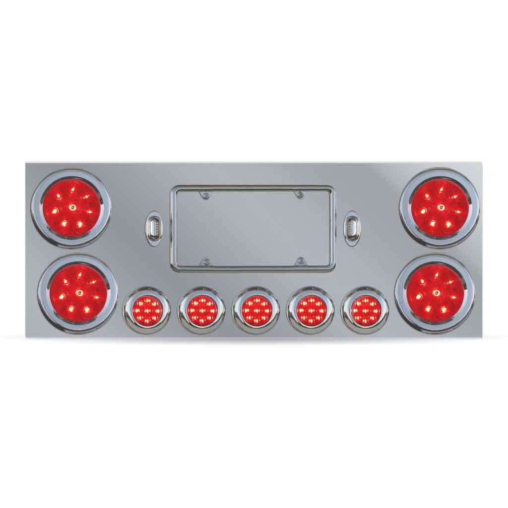 SS Rear Center Panel With 4X 7 LED 4″ Reflector Lights & 6X 9 LED 2″ Lights & Visors -Red LED/Clear Lens