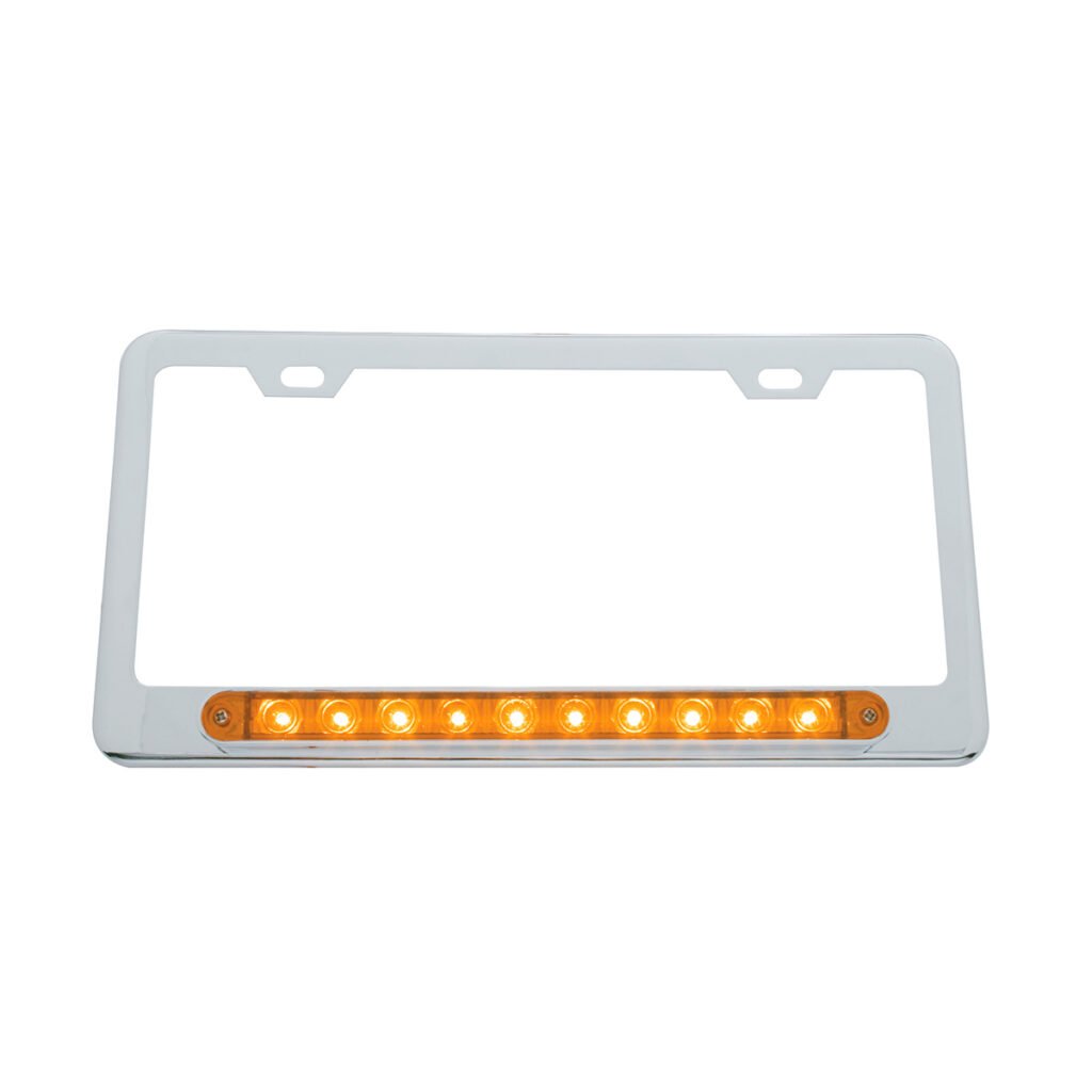 Chrome License Plate Frame With 10 LED 9″ Light Bar – Amber LED/Amber Lens