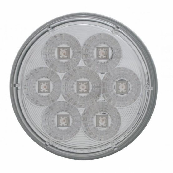 Stainless 1 Piece Rear Light Bar With 6X 7 LED 4″ Reflector Lights & Bezels – Red LED/Clear Lens