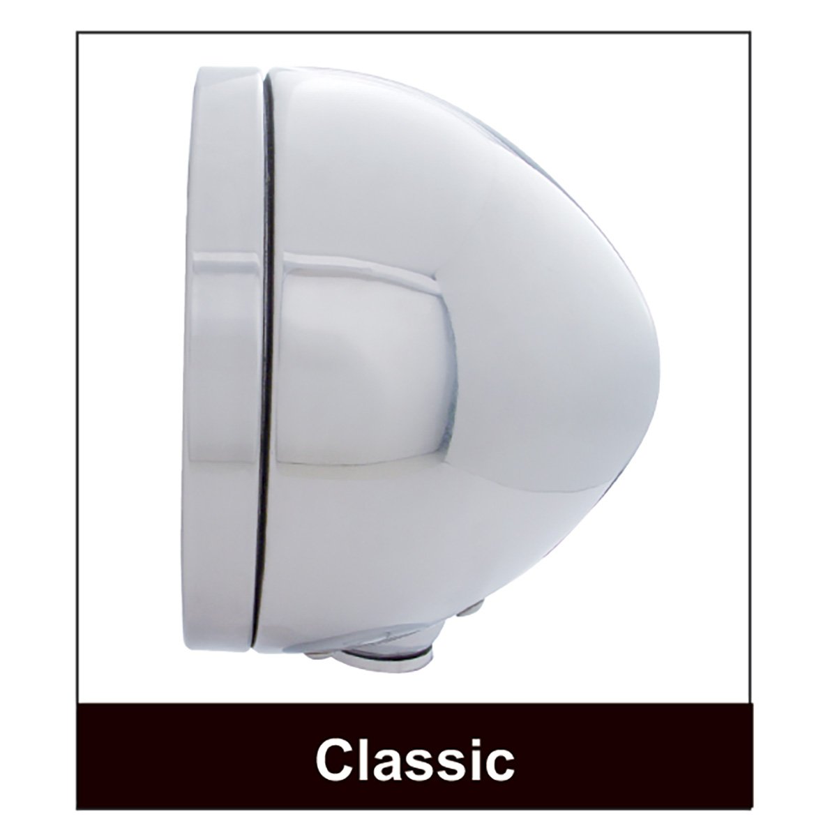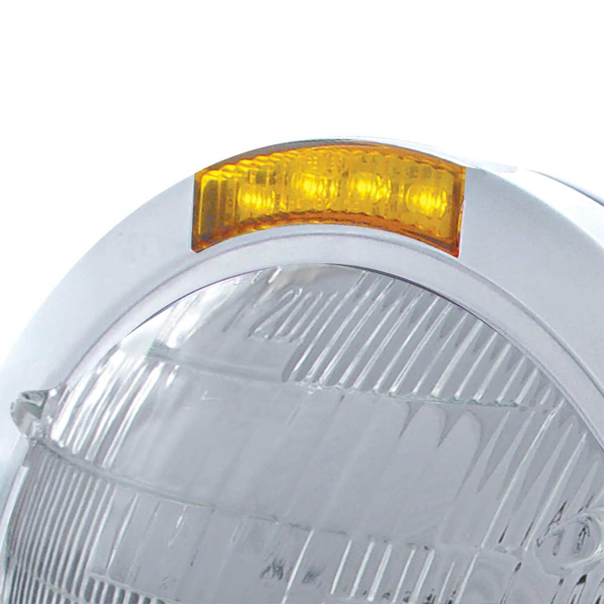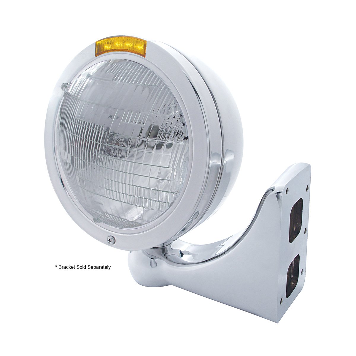 Stainless Steel Bullet Classic Headlight 6014 Bulb & LED Turn Signal – Amber Lens