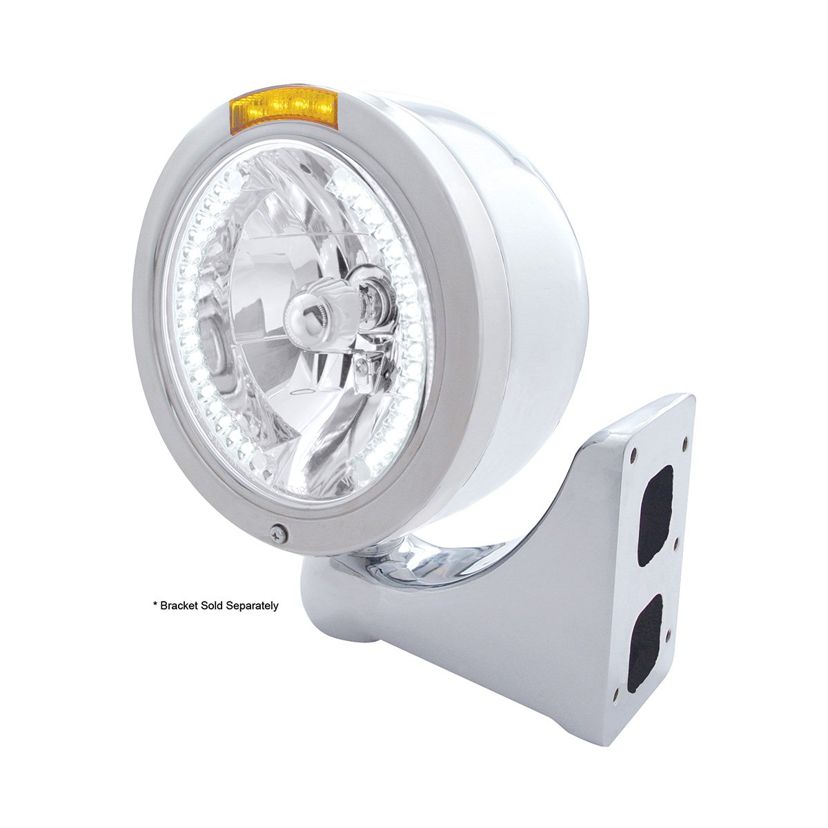 Stainless Steel Bullet Half Moon Headlight H4 With White LED & Dual Mode LED Signal-Amber Lens
